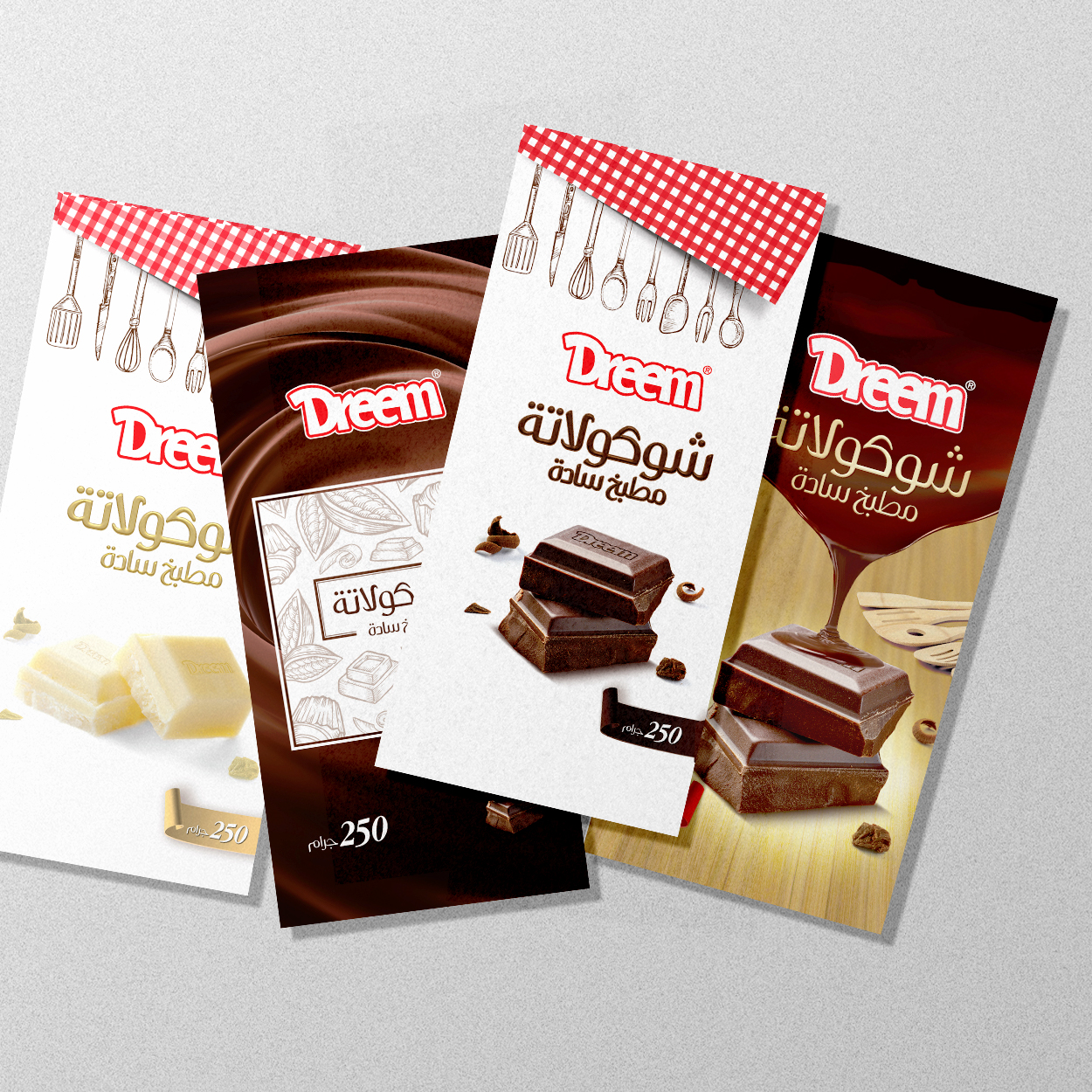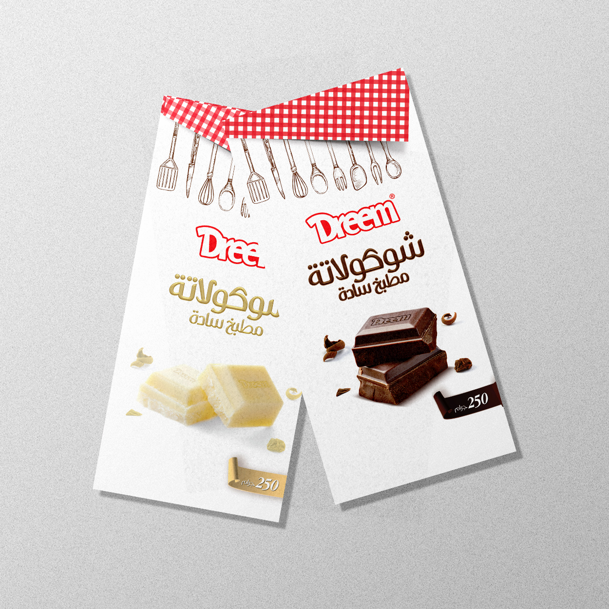 We cooperated with Dreem to create and design attractive Product Packing Design for their new product “Chocolate bars for kitchen use”. Here, we choose to go for simplicity that focuses on the Product with its 2 versions: “White & Dark Chocolate ”. Hence, we provide more than 2 options that achieve the goal of accessibility to the product. Finally, we can provide a project that aligns with the brand identity.